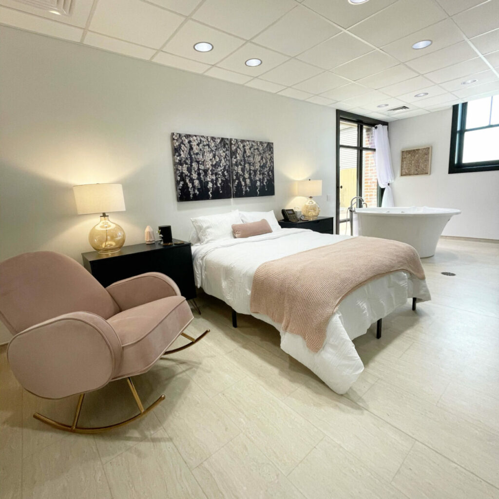 As you continue care with the Birth Center of Chicago, you’ll get to know our staff and enjoy the living room-style 1st-floor lobby. After checking in, you’ll go upstairs to our clinic rooms for your appointments. Feel free to grab a refreshment or fresh snack in the kitchen – or scan the shelves of our lending library – before you head up!